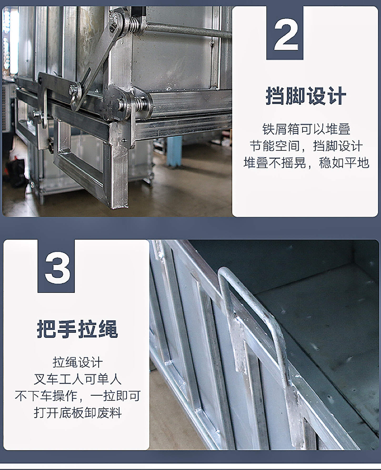 工业铁屑箱:工厂直发、加厚钢板、自卸自锁 名 称 工业级铁屑箱 定 做 支持定做 材 料 冷轧钢板 工 艺 酸洗、磷化、喷塑 产品用途 运料、装卸 产品特性 可堆垛结构、可移动、可又车使用 产品结构 便捷省力